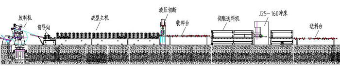 一、涵洞波紋板設(shè)備圖片整條生產(chǎn)線由放料/引料系統(tǒng)、成型系統(tǒng)、自動輸送/定位系統(tǒng)、沖孔系統(tǒng)、自動收料系統(tǒng)、打彎弧系統(tǒng)、電控系統(tǒng)等部分組成。
